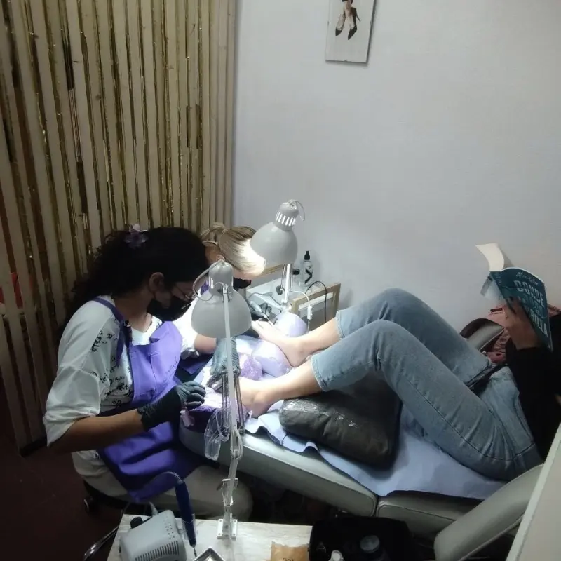 - Zona de trabajo para pedicura, herramientas necesarias y materiales.